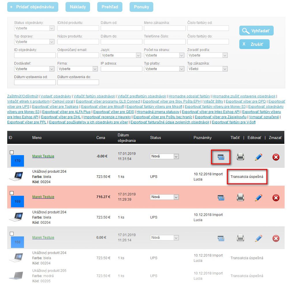 Napojenie platobného modulu je spoplatnené sumou 99 € / modul. Funkčné riešenia máme hotové pre väčšinu slovenských bánk, o ktoré obchodníci prejavili záujem. Stačí nás kontaktovať a radi Vám poskytneme informácie o možnostiach platby pre tú Vašu. Aj v tomto prípade nájdete výsledok platby v detaile objednávky, kde ihneď uvidíte, či prebehla bez problémov.