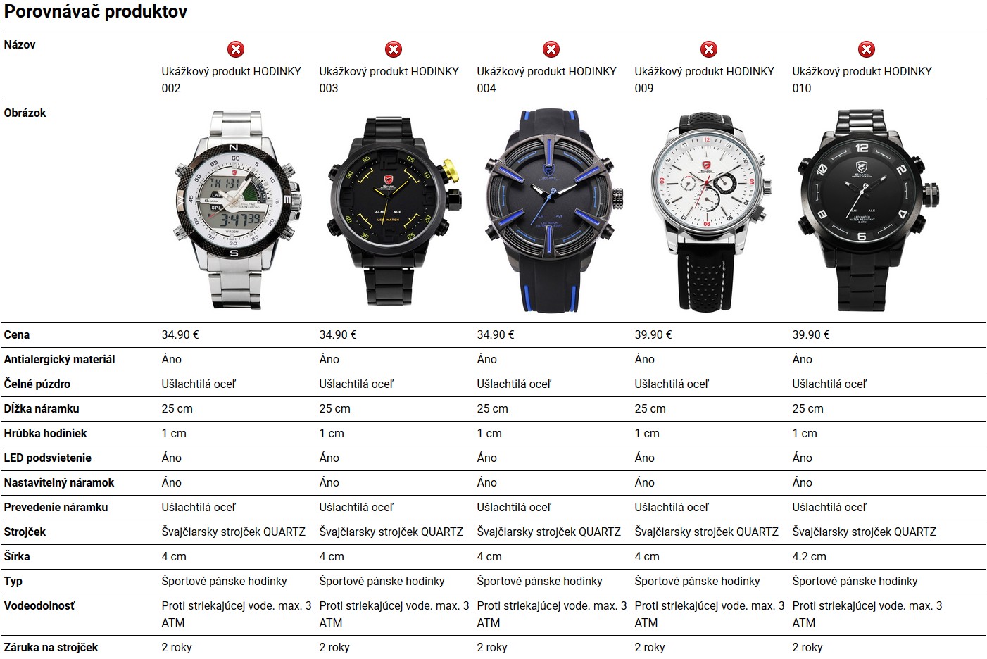 Možnosť porovnávania produktov
