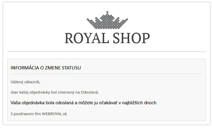 Automatická správa pri zmene statusu objednávky formou emailu alebo SMS