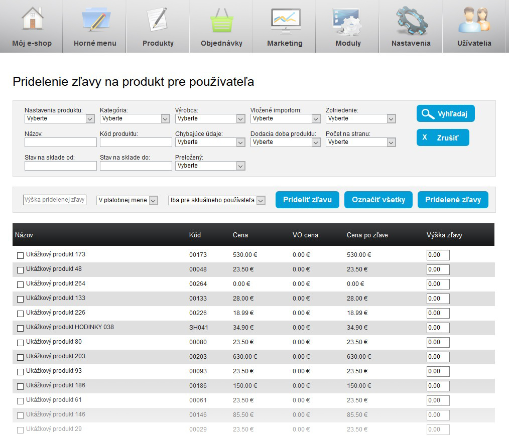 Zákazníkovi (vášmu dobrému odberateľovi alebo priateľom) môžete nastaviť plošnú zľavu na kategórie alebo vybrané produkty. Po jej pridelení sa mu automaticky odošle informačný e-mail.