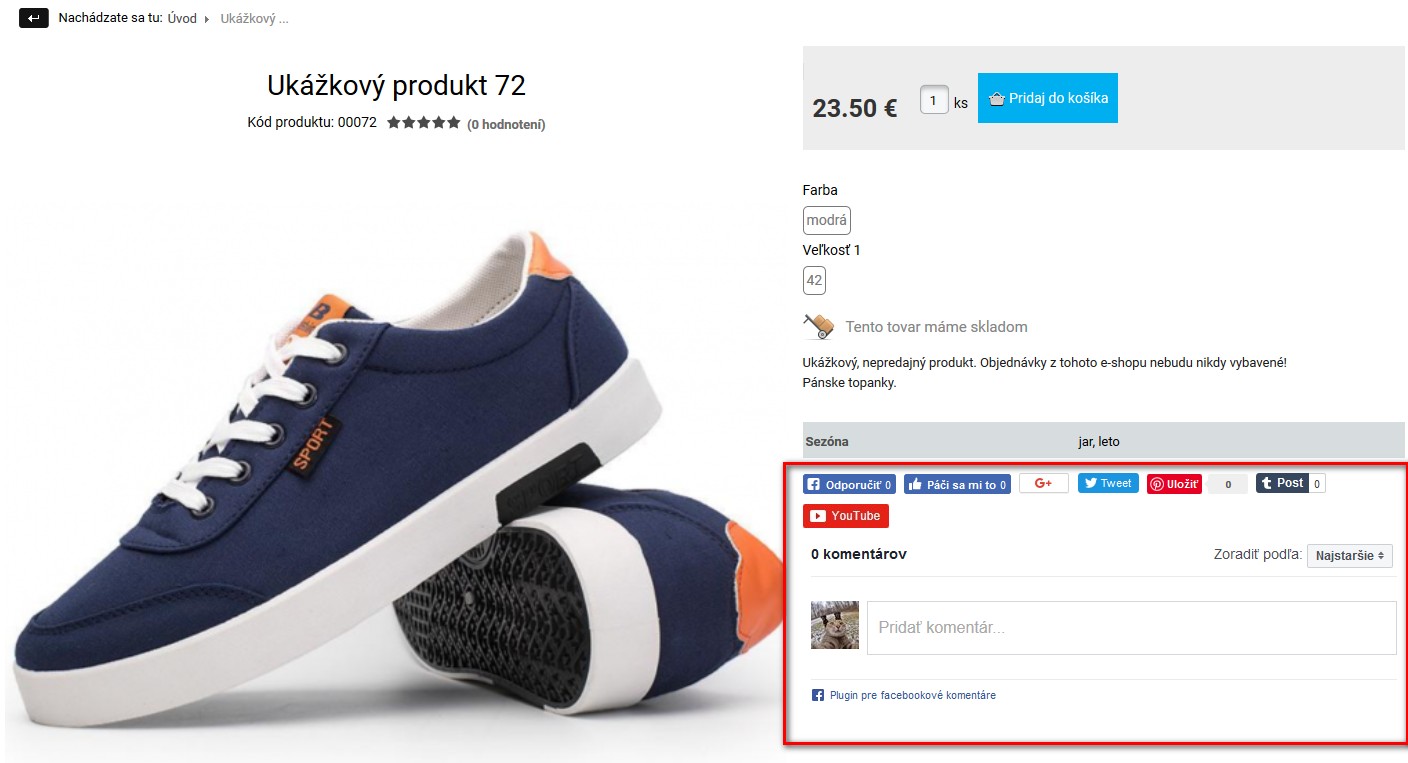 Implementácia Facebook Like a Google +1 tlačidiel priamo v detaile produktu