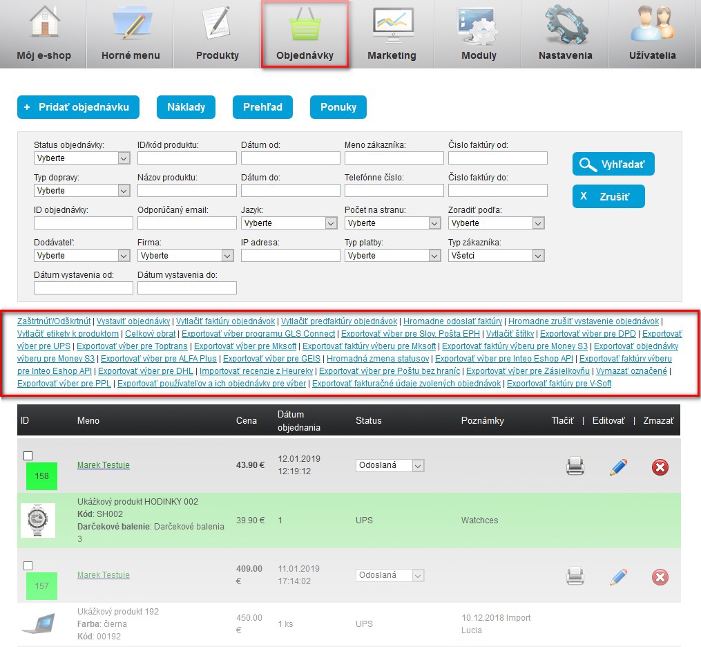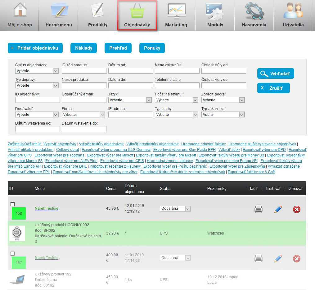 Export štítkov pre kuriérov GLS, DPD, UPS, DHL, Toptrans, Geis a Slovenskú poštu (už nič nevypisujete ručne)