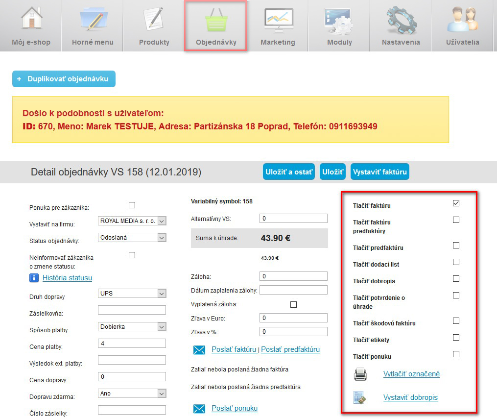 Systém môže zákazníkovi automaticky vystaviť a zaslať predfakrúru (typicky sa to používa pri platbe prevodom). To, či sa odoslala si môžete jednoducho skontrolovať v detaile objednávky.