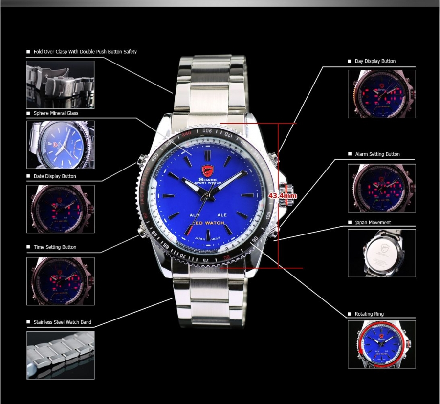NEPREDAJNE! Slúži ako ukážkový produkt. Hodinky SHARK dokonale spájajú švajčiarksy dizajn a švajčiarske technológie. Použitie kvalitných materiálov zaručuje kvalitu a dlhotrvácnosť hodiniek. Dizajn hodiniek bol navrhnutý renomovaným švajčiarskym dizajnérom Markusom Zwizbergerom. Hodinky sú stabilné a presné. Presvedče sa o kvalite hodiniek SHARK a objednajte si ich ešte dnes!